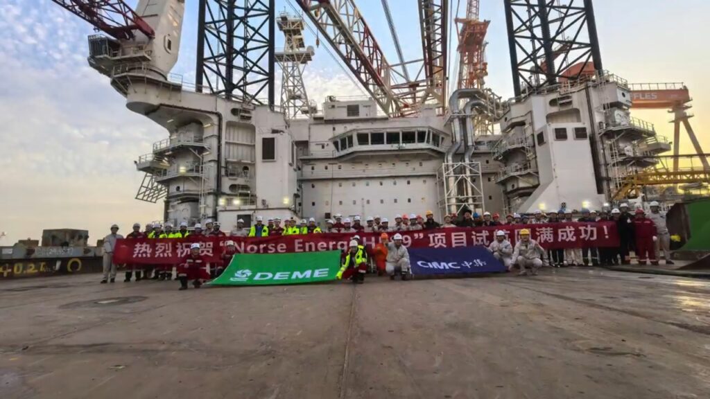 中国の山東省 煙台市にあるCIMC Raffles Offshoreで建造しているDEMESEP起重機船Norse Energi」が海上公試(SEA TRIAL)を完了。