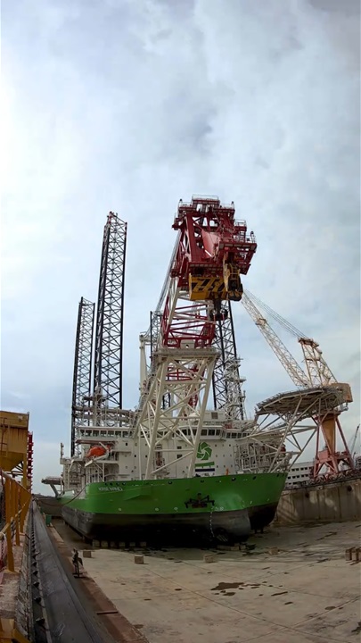 SEP起重機船「Norse Wind」の船体をDEMEグリーンに塗り変え