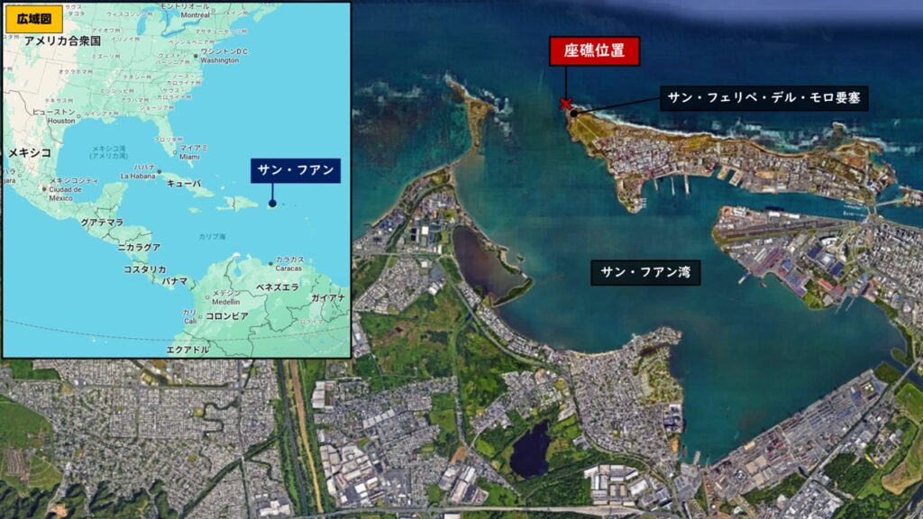 2026年2月9日12時ごろ、プエルトリコの首都サン・フアンで港入口に全長80mのOil Barge「Defiant」が座礁する事故発生。