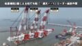 3分割で製作した円筒形の浮体をクレーン2台で相吊りして一体化させていく。