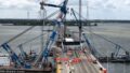 台湾の高雄港沖でコンテナ船が異常な傾き、空のコンテナ6個流出