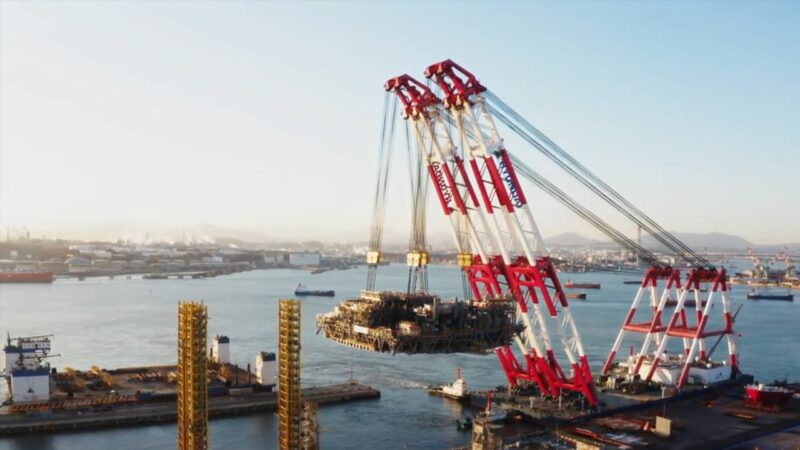 吊上げ記録は、2021年1月21日。メキシコ湾の「the King’s Quay project」で使用されるFPS(floating production system)のトップサイド設置。場所は韓国のHyundai Heavy Industries、shipyard in Ulsan。