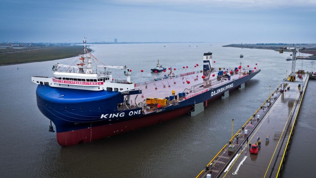大金重工が建造する4万トンの大型甲板輸送船「KING ONE」進水 洋上風力発電