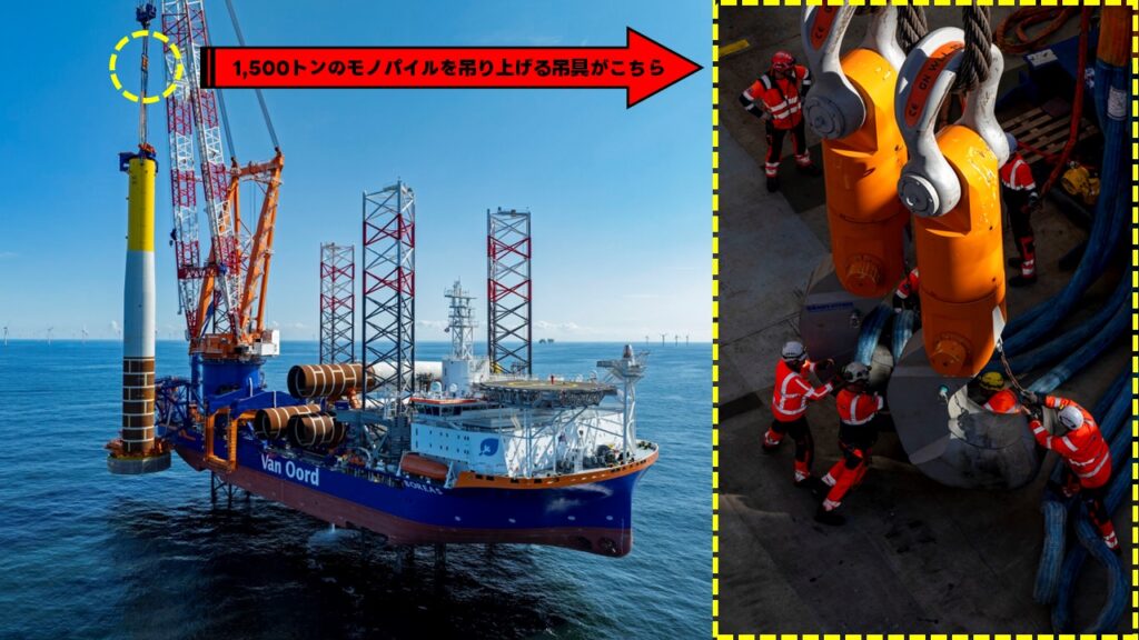 モノパイル設置作業をおこなったのは、Van OordSEP起重機船Boreas」。