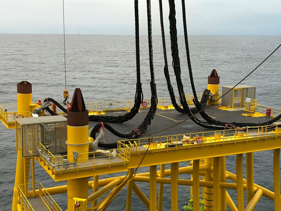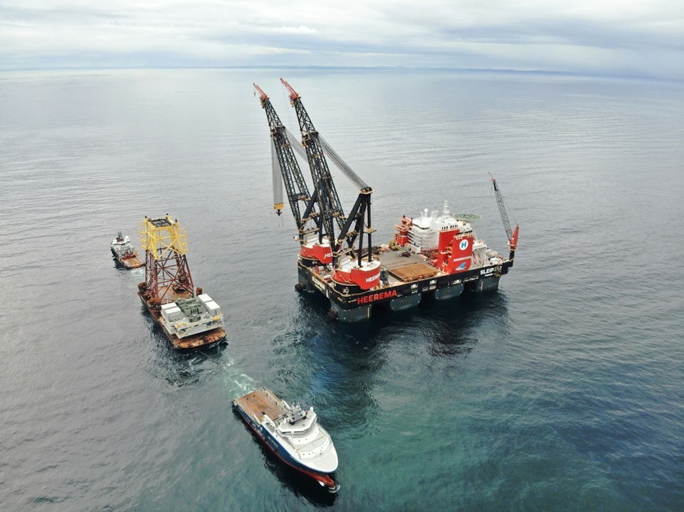 2025年8月4日、スコットランド沖の「Inch Cape Offshore Wind Farm」で洋上変電所の設置完了が発表されました。重量はジャケット 3,476トン、トップサイド 2,927トン。