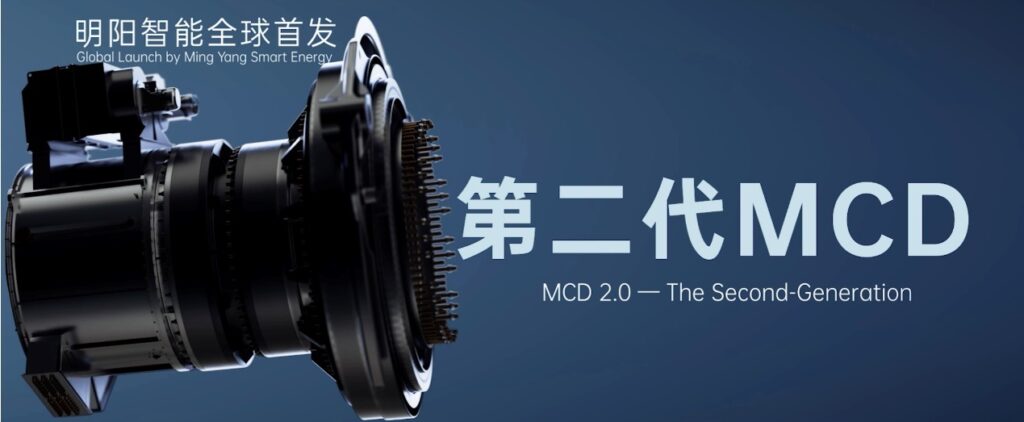 明陽智能は、次世代MCD(medium-speed compact drive:中速コンパクトドライブ)の製品グループも発表。自社ウェブサイトの掲載記事では、セミダイレクトドライブ技術の世界的リーダーであると自負した上で、風力発電を「より信頼性が高く、より効率的で、より送電網に優しく、より経済的で、よりインテリジェントな」時代へ導くと述べている。