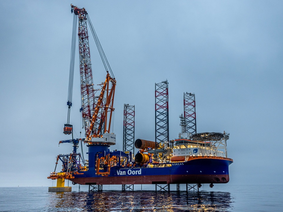 モノパイル設置にはVan OordのSEP起重機船「Boreas」を使用し、「Hollandse Kust West Site VI」で予定していた全52基のモノパイル設置が完了したことも合わせて発表。