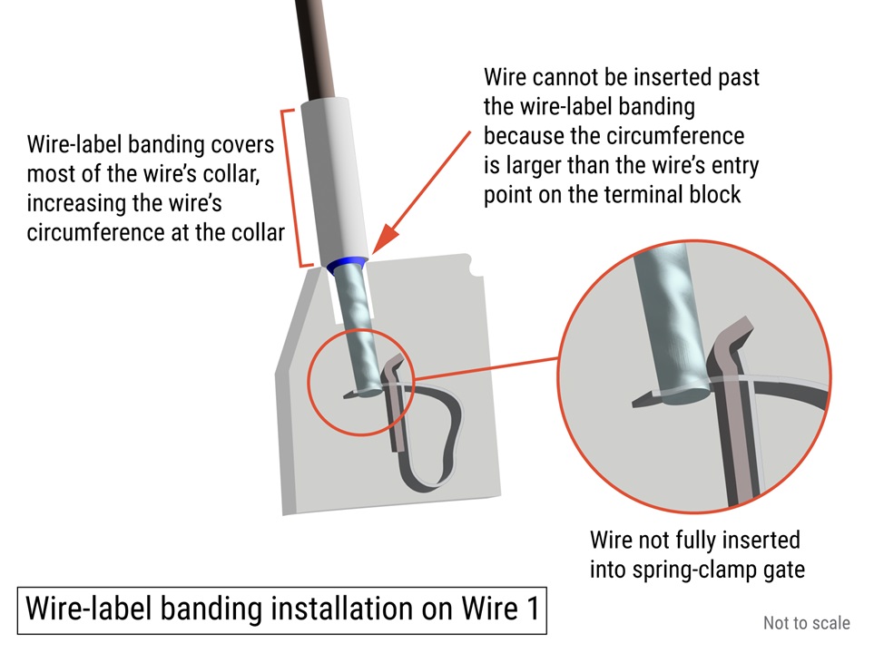 配線が緩んだ原因については、配線ラベルのバンドが端子台のスプリングクランプゲートへの配線の完全な挿入を妨げ、接続不良を引き起こしたという。
