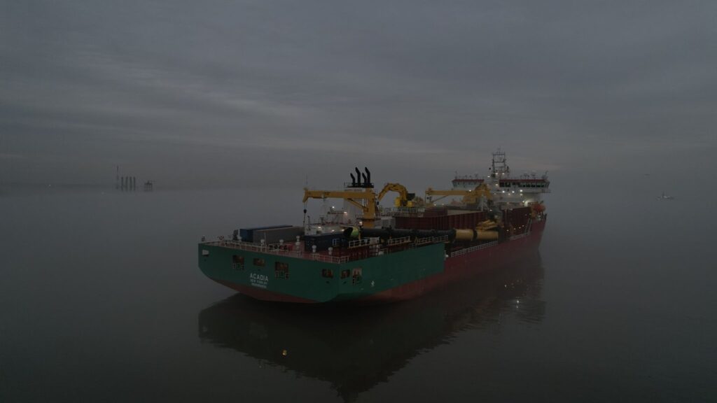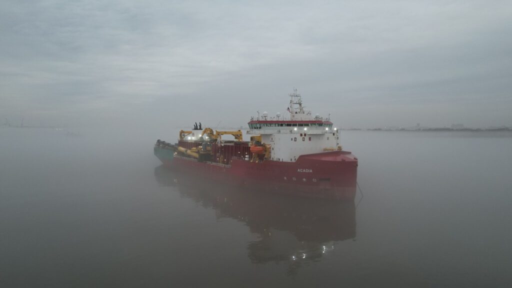 「Acadia」は、ジョーンズ法に準拠した米国初のSubsea Rock Installation Vesselとして建造されており、引き渡し予定は2026年初頭で、その後すぐに稼働を開始する予定。GLDDはLinkedInの投稿で数週間後には岩石の設置を開始する予定だと述べている。