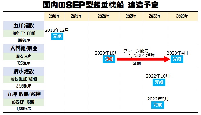 2021年12月22日、五洋建設、鹿島建設、寄神建設が建造中の1600トン吊りクレーンを搭載する予定のSEP起重機船「CP-16001」の進水作業を行った。