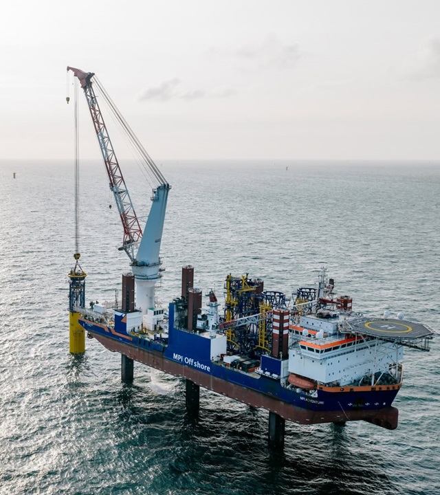 モノパイル設置作業は、Jan De Nulが所有する5,000トン吊りクレーン船「Les Alizés」によっておこなわれ、2次鋼構造物設置は1,000トン吊りSEP起重機船「MPI Adventure」、洋上変電所はScaldis Salvage & Marine Contractors NVが所有する4,000トン吊り起重機船「Gulliver」により施工を実施。