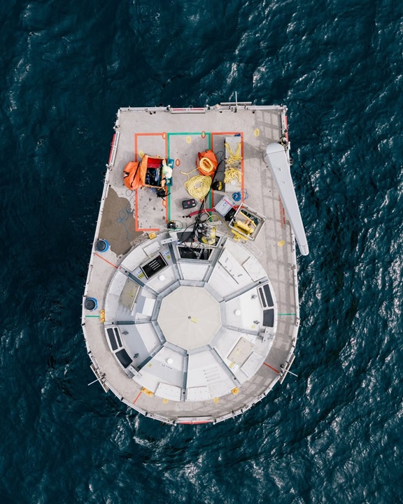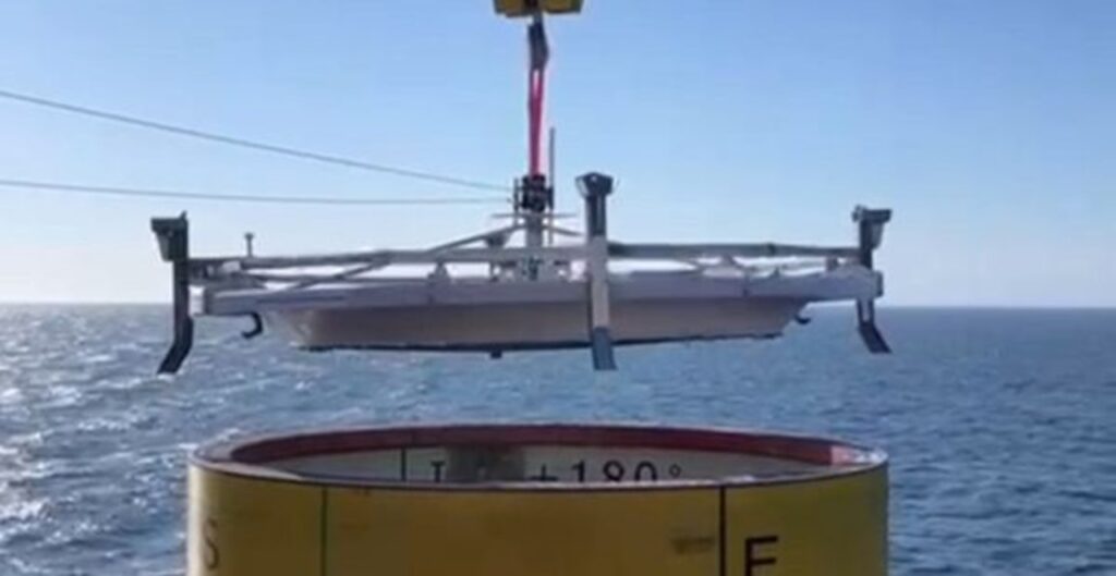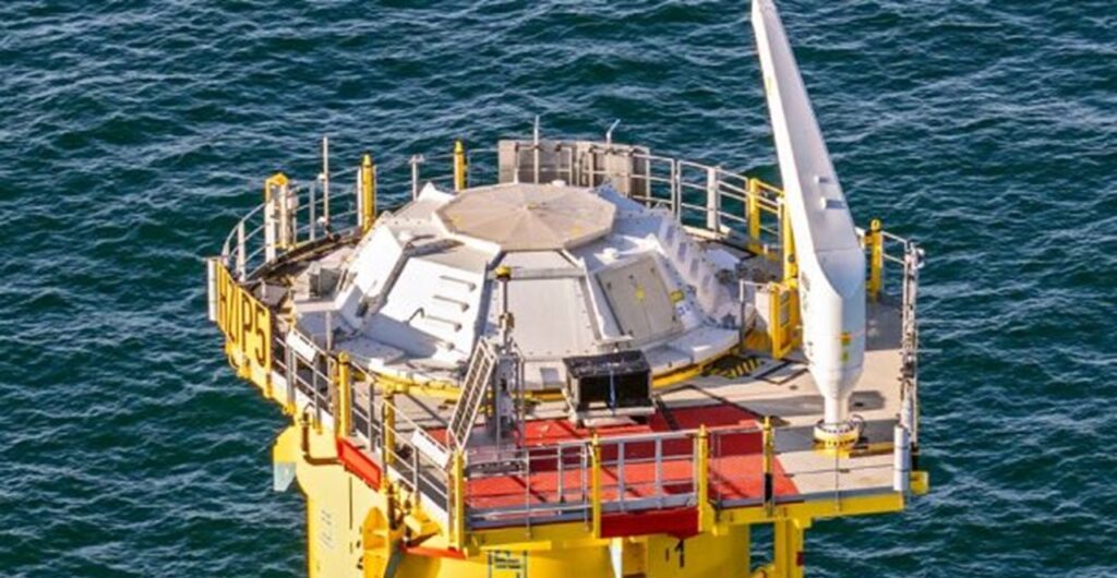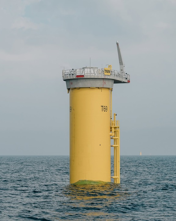 輸送船からの昇降をおこなうタラップやアクセスプラットフォーム、内部カセットなど2次鋼構造物の設置が2025年11月初旬に完了。風力タービン設置が開始される2026年春までの期間、海上の過酷な環境から基礎を保護するため、再利用可能なハードカバーが設置されています。