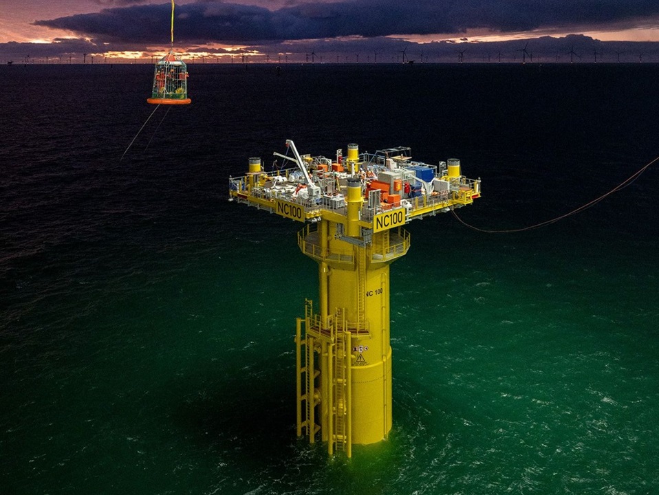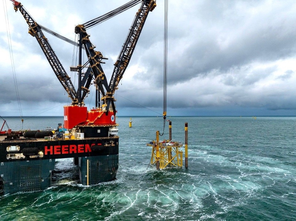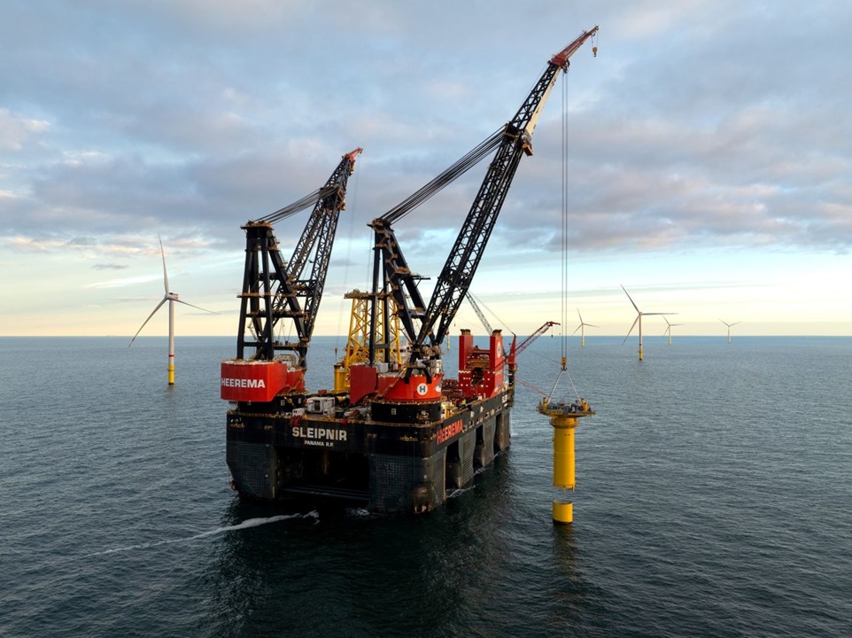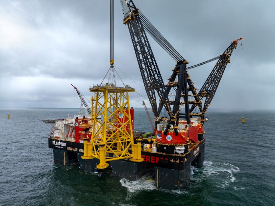 「Sleipnir」による洋上変電所基礎設置で作業にあたった作業員は約290人。2基の洋上変電所トップサイドは、2026年に設置予定。