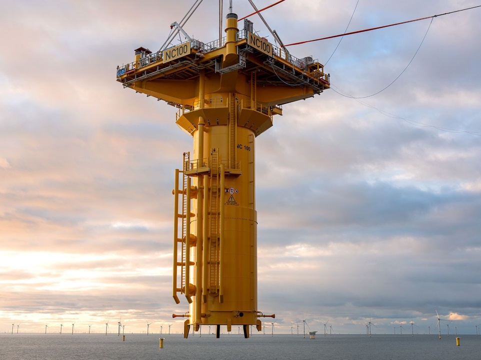 ドイツ沖の「Nordseecluster A」洋上変電所基礎2基設置