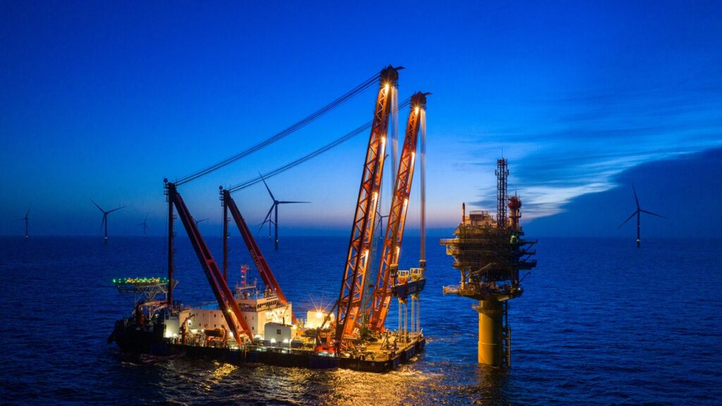 関連 ドイツ沖の「Nordseecluster A」洋上変電所基礎2基設置