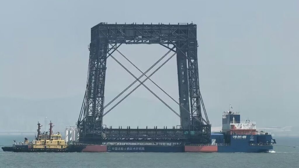 2025年11月30日に命名・引き渡し式がおこなわれたロケット回収プラットフォーム「領航者」(LING HANG ZHE)。中国船舶集団(CSSC)傘下の広船国際(Guangzhou Shipyard International)が中国航天科技集団公司の下部組織にあたる中国運載火箭技術研究院(China Academy of Launch Vehicle Technology)向けに建造。