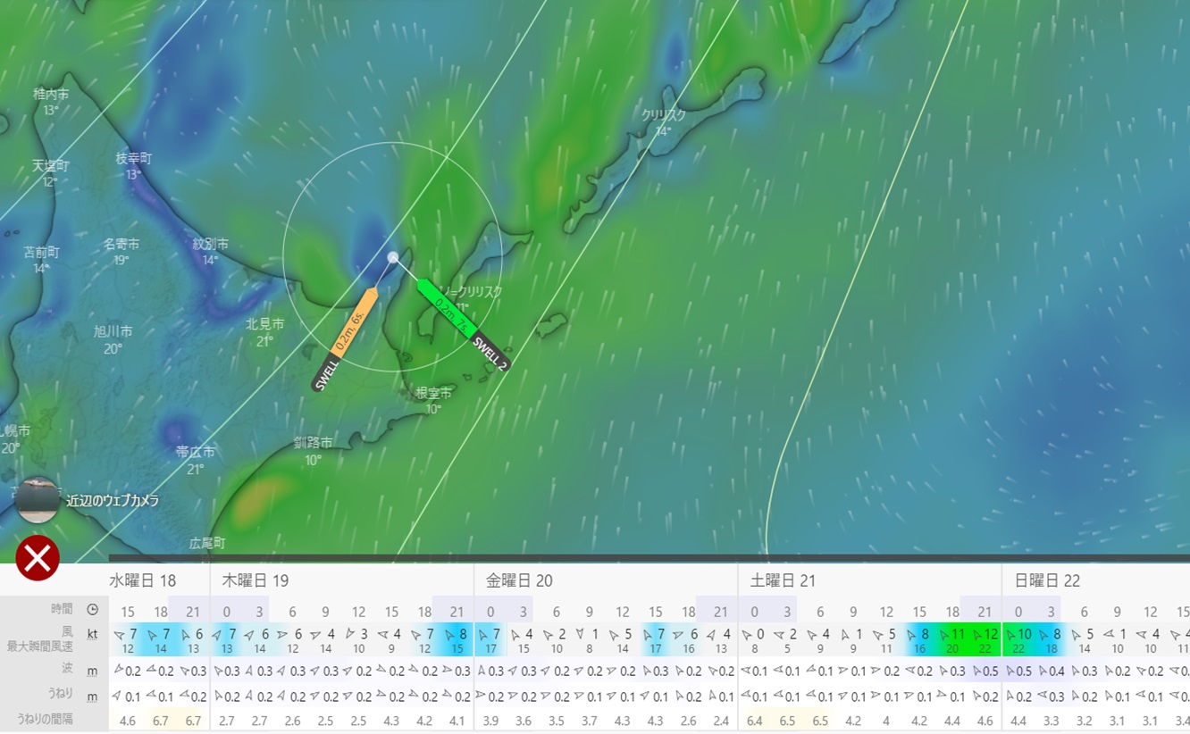 今のところ予報は穏やかですね。21日(土)の午後にオホーツク海側へ低気圧が近づく影響で南寄りの風が強くなるような予報が出てますが、事故の時とは風向きが違うのでそこまで波高が上がる予報はでていません。