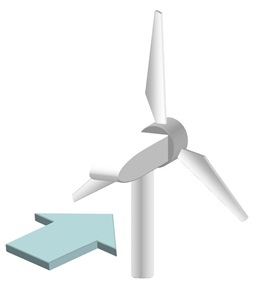 アップウィンド方式は、ロータがタワーの 風上側にあるのでタワーによる風の乱れの影響を受けない。